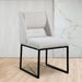 Give your dining area a contemporary makeover with this Jayce cream boucle fabric dining chair. Featuring a matte iron base and rich boucle fabric, this dining chair is both sturdy and cozy. Its contemporary design is ideal for any modern home, and its neutral color matches any color dining table. Its plush boucle upholstery provides you with a comfortable pace to sit, and its open rectangular back is stylish while adding spine support.