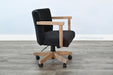 Bring comfort and character to your workspace with this Corded Swivel Office Chair, featuring a perfect blend of modern utility and rustic charm. Upholstered in a textured black corduroy-style fabric, the seat and backrest offer plush support with a refined feel. The lightly washed oak arms and base add a warm, natural contrast while maintaining durability and style. Complete with smooth-rolling casters and an adjustable seat height, this chair is designed to support your productivity in comfort and style.