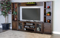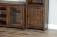 This Homestead Entertainment Center seamlessly integrates media storage solutions into a clean, simple design made of mahogany solids and veneer. With beautiful rough sawn distressing and the perfect balance of open and closed storage, this piece brings a whole new dimension to your space.