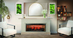 This fireplace mantel showcases a modern design with clean, overlapping panels on each side, adding a unique character to your space. The beautiful neutral two-tone finish complements a variety of décors, creating a warm and inviting atmosphere. Additionally, it includes a powerful heater insert to provide both ambiance and comfort during chilly evenings.