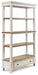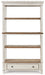 Elevating the art of traditional cottage styling, this bookcase is your heavenly home office realized. Its antiqued two-tone aesthetic blends a chipped white with a distressed wood tone top for added charm. The bookcase’s clever balance of shelf and drawer space beautifully works.