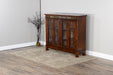 Elevate your home decor with this versatile bookcase that effortlessly adds a pop of personality to any arrangement The inclusion of textured glass doors and wood shelves provides storage for accents, your favorite novels, creating a visually clean display that evokes a sense of warmth and character. Additionally, the bookcase boasts natural slate accents, adding a touch of rustic charm and further enhancing its aesthetic appeal. Perfect for curating a personalized and inviting atmosphere in your living space.