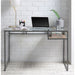 KD, Rectangular Writing Desk () • Storage: Open Compartment (Wooden Shelf, Fixed) • Glass Top (Back Open) • Metal Sled Base (Back Open) •• CONSTRUCTION •• Glass Top: 5mm Clear • Metal Frame: Metal Tube (Steel), 1mm • [Not Included: Cord Mgt, Keyboard Tray]