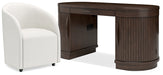 This home office package is perfectly modern in every way. The chair’s magnificent curves and neutral boucle upholstery are so pleasing to the eye, while the desk delivers a well-organized space for work-from-home professionals. This set is a striking study in upscale contemporary form and function.
