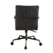 The Harith office chair brings comfort and style to any work space. Handsome, channel-seamed retro top grain leather upholstery is complemented by a metal base with casters and metal frame armrests. It's Industrial design promise comfort and function as well as stylish style. Some Assembly Required.
