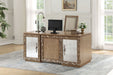 Inspired by mid-century royal style in Europe, our Orianne executive desk features vintage mirror fronts with raised scrolled floral inlays, making this piece beyond normal. The drawer is constructed with side metal glide and French front English back dovetail, and felt lined is included in the top drawer. With the matching armless office chair, this office set will add a sense of elegance to your working area.