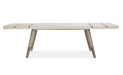 Gracefully-designed with a modern sensibility, the simple contemporary profiles of the Lenox Collection of dining room furnishings come alive with architectural elements and mixed materials including wood, metal, glass and clear mirror. Crafted of Random Width Cathedral White Oak Veneer and Hardwood Solids, Lenox combines the soft Acadia White finish with Warm Silver metal accents and Bronze Glass for a refined and romantic elegant glam. A signature geometric fretwork in the Warm Silver finish appears on the dining chair backs, giving a designer flair to the collection. Metal ferrule caps in the warm silver finish on the dining table, chair and bench legs are a sophisticated touch and complement the Silver Mist hardware. Bring grace and glamour to your home with the Lenox Collection.