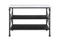 Minimalistic design paired with clean, simple color. The Brahm Kitchen Island gives off a light and airy feel to a compact cooking space. Clean-lined metal frame is topped with a artificial stone top, creating a sleek, modern silhouette that gives your kitchen an open feel. Spacious rectangular table top with two tier shelf provides more countertop space and storage. Use this stylish yet functional addition to complete your kitchen decor.