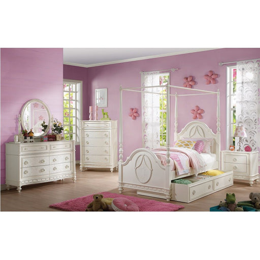ACMEThe Estrella girl's bedroom collection features decorative crown carving on headboard and mirror. Its matching case goods decorated with white fini...