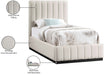 Remake your bedroom in an instant with this Lucia linen textured fabric bed. Upholstered in soft-to-the-touch linen textured fabric on its headboard, footboard, and side rails, this handsome bed has a high headboard for an attention-demanding look in your room. Channel tufting on the headboard and footboard add to its aesthetic beauty while providing texture and dimension. The bed rests on a black-finished base that's crafted from solid wood for lasting beauty and durability.