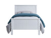 The Bungalow youth bedroom collection will create a clean and refreshing look in your child's bedroom. Features beadboard paneling headboard and footboard and perfectly complemented by clean styled cases. Crafted from selected woods and veneers for strengths and durability, its amazing white finish offers energetic and bright look that will match any interior. This collection is a perfect addition to your child's room as it is designed to fit many styles an decors.