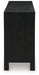 | Details | Made with wood and veneer, Black finish with light sandblasted effect, Woven cane door fronts, Metal door pulls with black finish, 4 doors with soft-close hinges, 2 shelves, Openings in back for electronics, Assembly required | |