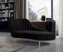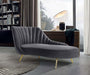Lean back and lounge in luxurious style on this stunning Margo velvet chaise by Meridian Furniture. This contemporary chaise features plush velvet upholstery that is both classy and sumptuous against your skin, a single seat cushion and rounded arms that curve into a low, rounded back, creating a perfect, modern piece for your home. stainless steel legs support this chaise and provide stunning contrast to the chaise's plush, fabric.