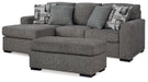 Details 5240418: Corner-blocked frame, Attached back and reversible seat cushions, Chaise can be positioned on either side (thanks to reversible seat cushion and movable ottoman), High-quality foam cushions wrapped in poly fiber, Accent pillows included, Pillows with soft polyfill, Polyester upholstery, Exposed feet with faux wood finish, Platform foundation system resists sagging 3x better than spring system after 20,000 testing cycles by providing more even support, Smooth platform foundation maintains tight, wrinkle-free look without dips or sags that can occur over time with sinuous spring foundations, 5240414: Corner-blocked frame, Firmly cushioned, High-quality foam cushion wrapped in poly fiber, Polyester upholstery, Exposed feet with faux wood finish,