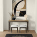 - The Sutton Place console table with 2 stools embodies relaxed contemporary style with a focus on the natural beauty of oak. Light wire-brushing enhances the tight-grain oak veneers, sturdily crafted over hardwood solids. Warm caramel tops beautifully contrast with rich cocoa legs, while a subtle diamond pattern on the table surfaces adds a touch of sophistication. Thoughtfully designed for both style and function, the collection includes a cocktail table, end table, and chairside table with a convenient storage drawer, with a lower shelf on each piece providing additional space for storage or display. A console table with optional stools offers extra seating when needed, seamlessly blending practicality with elegant design for a warm and inviting accent to your home..