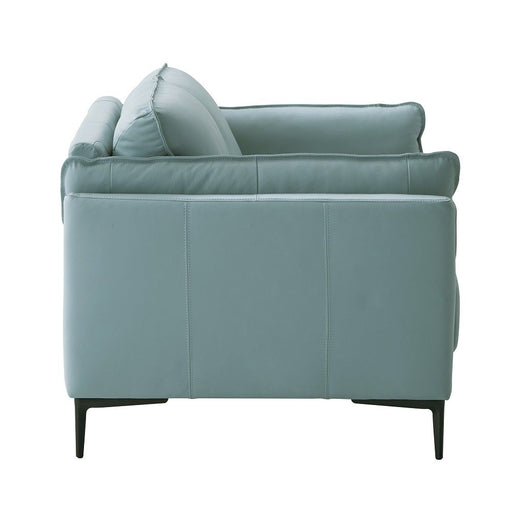ACMECuddle up in this decadently plush Lydia sofa set. The set is upholstered in a warm and earthy brown leather-aire. Distinctive elements include wra...