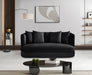 The Alder velvet upholstered loveseat is an invitation to relax. Its rounded silhouette and soft velvet upholstery create a cozy and inviting space, perfect for curling up with a good book or simply unwinding after a long day. Whether you're entertaining guests or enjoying a quiet moment alone, this loveseat is the ideal place to unwind.
