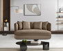 The Alder saddle velvet upholstered loveseat is an invitation to relax. Its rounded silhouette and soft velvet upholstery create a cozy and inviting space, perfect for relaxing with someone special. Whether you're hosting guests or enjoying a quiet evening, this loveseat brings warmth and style to any room.