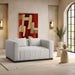 Succumb to the welcoming comfort of this Lucia textured linen fabric living room loveseat. This oversized loveseat offers you the room you need to cozy up with a book or a cup of hot tea. Its rich linen textured fabric feels soft and inviting against the skin, and the plump back cushion adds to its relaxing feel against your body. Deep channel tufting keeps the loveseat's fill intact, and it rests on a contrasting black solid wood base for resilient support.