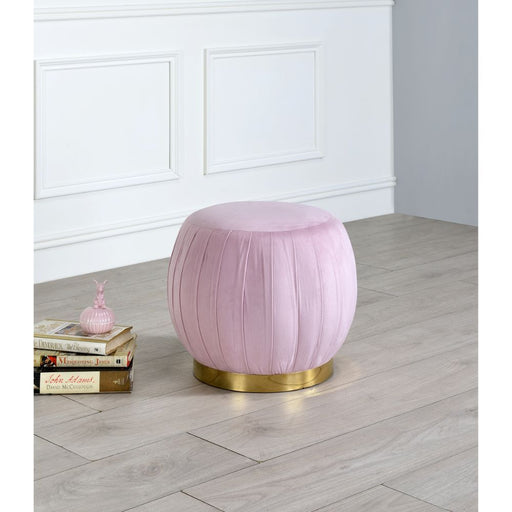 ACMEAssembled, Backless Round Ottoman (NO Storage) • Fully Padded Seat: Velvet • Armless • Wooden Inner Frame • Metal Round Base. Zinnia - Ottoman - Pi...