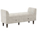 Wrapped in a soft, lightly textured chenille fabric, the Emily Ottoman is as inviting as it looks. The subtle flecked tones of the beige contemporary fabric and traditional solid wood legs match any décor, while the vertical channel stitching on the drawer fronts adds a delicate touch of detail. As you pull open the smooth-gliding drawers, you’ll find a hidden home for everything from cozy blankets to remote controls to keep your space clutter-free. The Emily Ottoman is a statement piece that quietly transforms your living area.