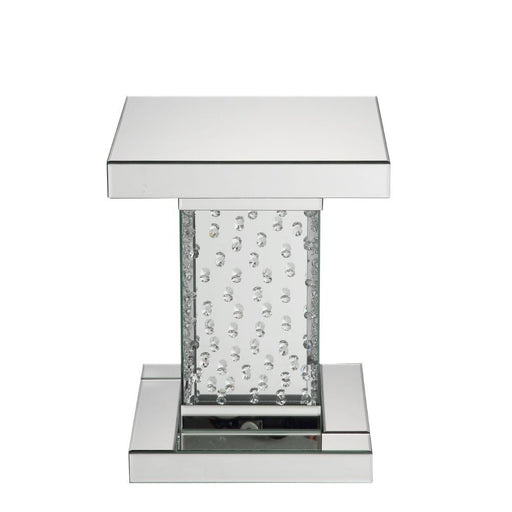 ACMEAssambled, Square End Table NO Storage CONSTRUCTION Glass Top: 4mm Clear Tempered Glass (Fixed Top) Mirrored Apron & Pedestal BaseProduct Featu...