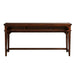 Elevate your space with the traditional Aspen Skies console bar table. Crafted of pine solids and New Zealand pine veneers with metal accents, this piece features a russet brown finish, cut outs beneath the top for additional storage, and appealing corner metal accents with nail heads. This traditionally designed console bar table would be a great addition to any space.