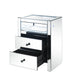 Style and storage abound in the ample and functional design of the Malish occasional table. Two drawers and open compartment offer plentiful enclosed storage for remotes, magazines, or any other items you prefer to keep close at hand. At night, you can turn on and off the LED Function. A glam display table that naturally attracts the eye with its beveled mirrored finish.