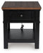 Raise the bar on modern farmhouse style with this end table. Its sturdy silhouette and casual good looks are accentuated with a two-tone finish, which pairs a warm satin black base with a contrasting butcher block veneer top. A spacious storage drawer and dual USB charging ports keep devices powered up and close at hand. Whether your style is vintage, country or eclectic, this table adds a hearty element.