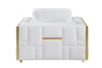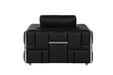 This Modern Top Grain Italian Leather chair set is crafted using the finest of materials, durable Brazilian solid wood construction, and premium leather. This sofa set is a fine example of modern design. It displays an aesthetically pleasant linear design with chrome accents to foster sophistication. A great way to convey simple luxury in any room. This masterpiece is a delightfully distinguished mix of functionality and style. The chrome trim effortlessly elevates any room with a touch of contemporary design. The cushions easily sit one person in optimal comfort, with the width of the armrests also offering a functional purpose as a perfect place for resting your favorite drink or a book. Starting from the design to the finished product, each step of the production process is checked rigorously for quality. The selection of top-grain Italian leather for the upholstering and solid Brazilian wood for the frame is done with the utmost respect for the finest raw materials. Italy is world-renowned for high-quality leather. You can smell, feel, and see its high quality in every sofa set.