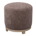 - The Lana swivel ottoman offers elevated texture and warmth in a compact footprint. A round ottoman design wrapped in light-catching, high-sheen fabric provides tonal dimension that shifts with the light. The solid wood ring base features a heavily distressed finish and a smooth 360-degree swivel for added functionality and artisan appeal. Perfect as a seat, footrest, or accent piece in modern or transitional spaces..