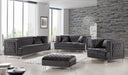 The Lucas Collection by Meridian Furniture. Features beautifully tufted velvet upholstery with a custom nail head design and clear acrylic legs. This collection is guaranteed to be the highlight of any home.