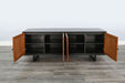 Bring warm texture and modern sophistication to your space with this Black and Natural Cane Credenza. Featuring a matte black frame and contrasting natural rattan door panels framed in rich wood, this piece delivers a bold yet balanced aesthetic that fits seamlessly into modern, boho, or transitional interiors. Four spacious cabinet doors offer plenty of concealed storage, making it a practical and stylish solution for organizing dining essentials, electronics, or everyday clutter. Whether placed in the dining room, living room, or entryway, this credenza is sure to make a statement.
