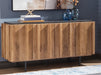 | Details | Doors, sides and interior made with solid mango wood, Back made with mango veneer and engineered wood substrate, Light brown finish, Engineered wood top with charcoal gray finish, Metal legs with black finish, 4 doors, 3 fixed shelves, Openings in back for electronics, Minor assembly required, simply lay flat and attach feet | |