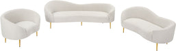 Impress family and guests alike with this Ritz Boucle Fabric Chair. Wrapped in a cozy boucle fabric, this chair exudes elegance and comfort. The gold metal legs add a touch of glamour to the overall design, making it a perfect addition to any modern living space. Sit back, unwind, and sink into the plush cushions of this chic and stylish chair.