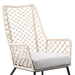 The Marco Indoor Outdoor Steel Lounge Chair from Armen Living will introduce a completely new feel to your outdoor patio area that will enhance your love of your space. The incredibly comfortable seat cushion is meant to keep relaxed and alleviate any discomfort. The tall, breathable back was also designed with your comfort in mind and allows the elements to pass through while still providing a remarkable level of comfort. This chair is designed with a unique feature where the frame is wrapped with highly durable and an immensely intricate woven rope - adding a completely new dimension to your outdoor furniture which will last just as long and will be even more eye-catching than conventional outdoor frame material. Furniture made from woven rope can be an especially good choice for people looking for items they can leave outside all year long. That is because woven rope is highly resistant to all types of weather including heavy winds and rain.
