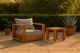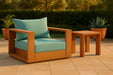 Make this Tulum teak outdoor patio chair the go to spot for relaxing and entertaining guest in your outdoor space. This chair features resilient water resistant fabric making it the perfect spot to rest your feet and enjoy the company of friends or family while you take in the sunrise. Teak construction makes it a tough addition for the patio or porch and gives it the longevity and durability it needs to weather the elements with beautiful ease. Pair it with other items from the Tulum collection for a look that impresses from every angle.