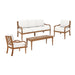 Introducing the Savannah Outdoor Conversation Set in Linen, a charming addition to your outdoor living space. Crafted from FSC Certified Acacia Solid Wood, this set promises durability and eco-friendliness, ensuring years of enjoyment. Embrace the gracious traditional style of this set, featuring light wood finishes, turned legs, and curved armrests, paired with white linen fabric that exudes southern hospitality. Create a welcoming outdoor retreat with the timeless elegance of the Savannah Outdoor Conversation Set