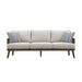 The Genova Patio Set, featuring a spacious patio sofa and a stylish coffee table, effortlessly combines durability, comfort, and modern sophistication for any outdoor space. Built with durable aluminum frames and a baked-on powder coat finish, this set offers superior scratch resistance and long-lasting performance. Designed for all-weather durability, the furniture is wrapped in high-density PE wicker, an eco-friendly synthetic resin that provides the classic look of wicker with the added benefits of being low-maintenance, colorfast, and resistant to water, mildew, and fading. The sofa features plush 6 ½" high-density foam seat and back cushions upholstered in premium light gray Sundura™ fabric—a solution-dyed 100% polyester that resists fading, mildew, and moisture, ensuring vibrant color and lasting protection season after season. The coffee table’s slatted top adds a classic touch while promoting water drainage for added practicality. Designed with clean lines, neutral tones, and a woven rope seat back, this set delivers an open, airy feel with solid structural support. The minimalist design is enhanced by evenly spaced vertical strands, bringing a refined texture and contemporary elegance to any outdoor setting.