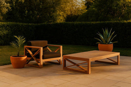 New ClassicThe Wesley Wood Patio Set offers the perfect combination of durability, comfort, and modern elegance for any outdoor space. Expertly crafted from F...