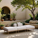 Sleek lines and soft water-resistant fabric bring contemporary style to the Laguna outdoor patio modular sofa. Crafted with a natural teak finish aluminum frame and quick-dry foam, it's built for ultimate outdoor relaxation. Rearrange or add to the set for endless configurations, creating a versatile lounging experience tailored to your space.