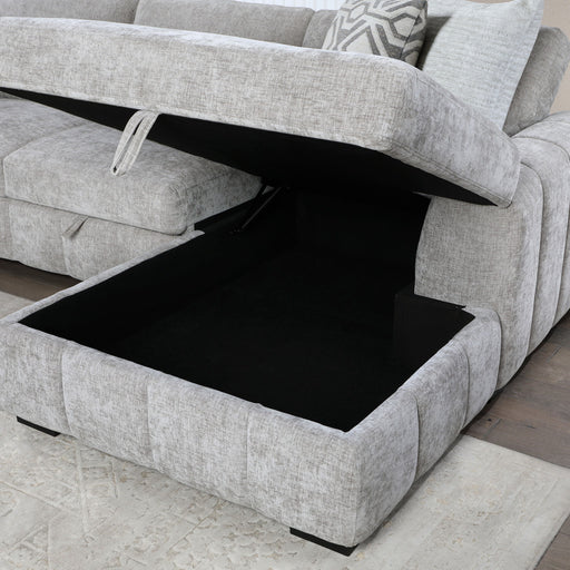 New ClassicThe Teddy Sectional Motion Upholstery Collection in cloud gray brings together sleek style, luxurious comfort, and cutting-edge features to transfo...