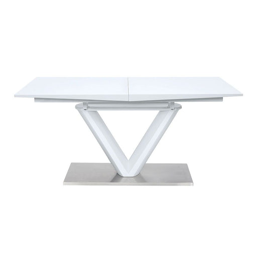 ACME1x14" Drop in Leaf Included High Gloss Finish Chrome Finish Base Upholstered Chair with Chrome Metal Legss Kamaile - Dining Table With Leaf - White...
