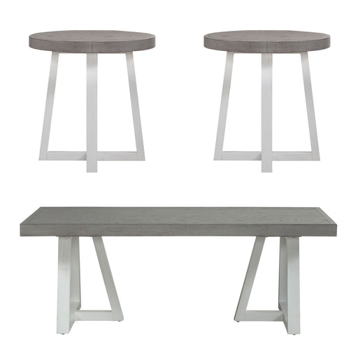 Liberty FurnitureElevate your space with the Modern Farmhouse splay leg cocktail table and splay leg end tables. Crafted of poplar solids with knotty white oak vene...