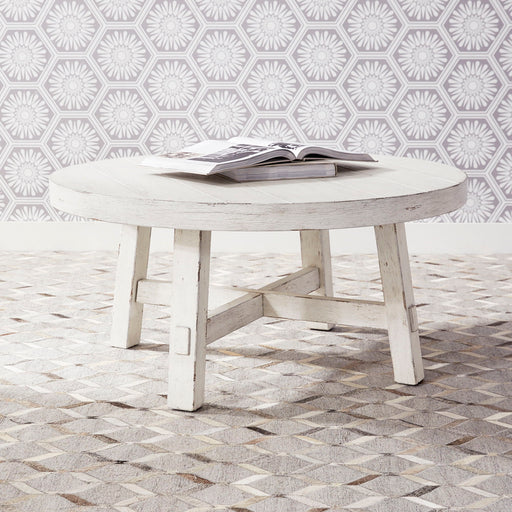 Liberty FurnitureAccent your space with the Modern Farmhouse splay leg round cocktail table. Crafted of poplar solids with knotty oak veneers, this piece features a...