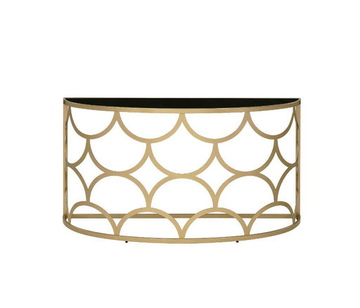 ACMEThe sleek console table has timeless fashion and eye-catching appeal. It's metal base works perfectly with gold finish, showcasing a striking geome...