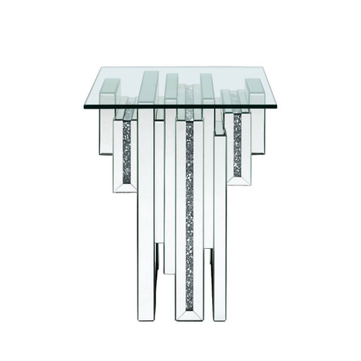 ACMEGo full glam with this Noralie End Table. The beautiful mirrored finish and glistening faux diamonds inlay will reflect light and make any room app...