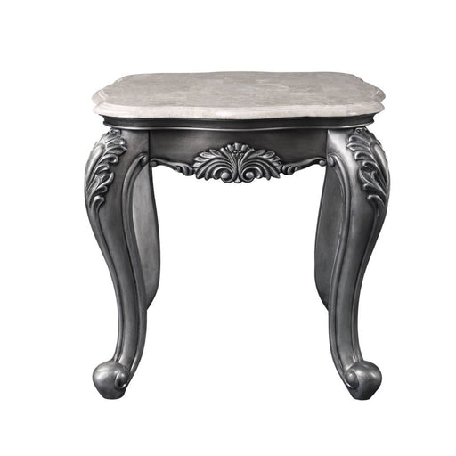 ACMERectangular End Table • NO Storage • Marble Top • Wooden Frame with Raised Scrolled Trim and Floral Motifs (Vintage Hand-Brush Finish) • Queen Anne...