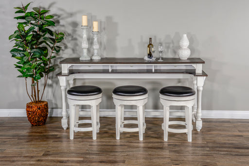 Sunny DesignsThis Carriage House console bar table was built with mahogany and mindi solids and veneers. Designed to be used behind sofa or loveseat with three ...