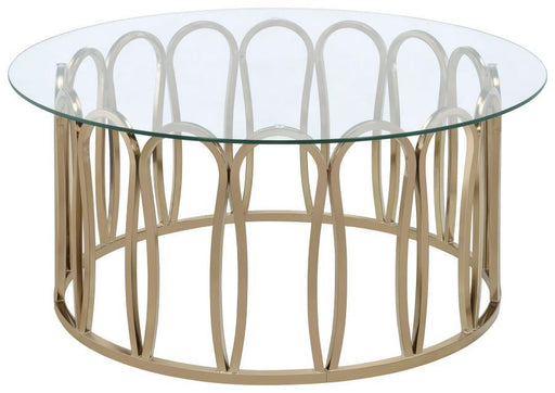 Coaster Fine FurnitureThis coffee table set features a round design with clear tempered glass tops supported by sturdy metal frames. The frames are finished in electropl...